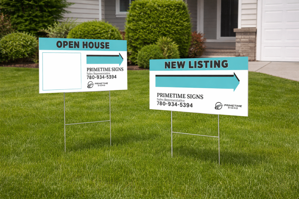 We create highly visible directional signs that help visitors and buyers easily find your listings and open houses. Designed for quick placement and strong outdoor visibility.