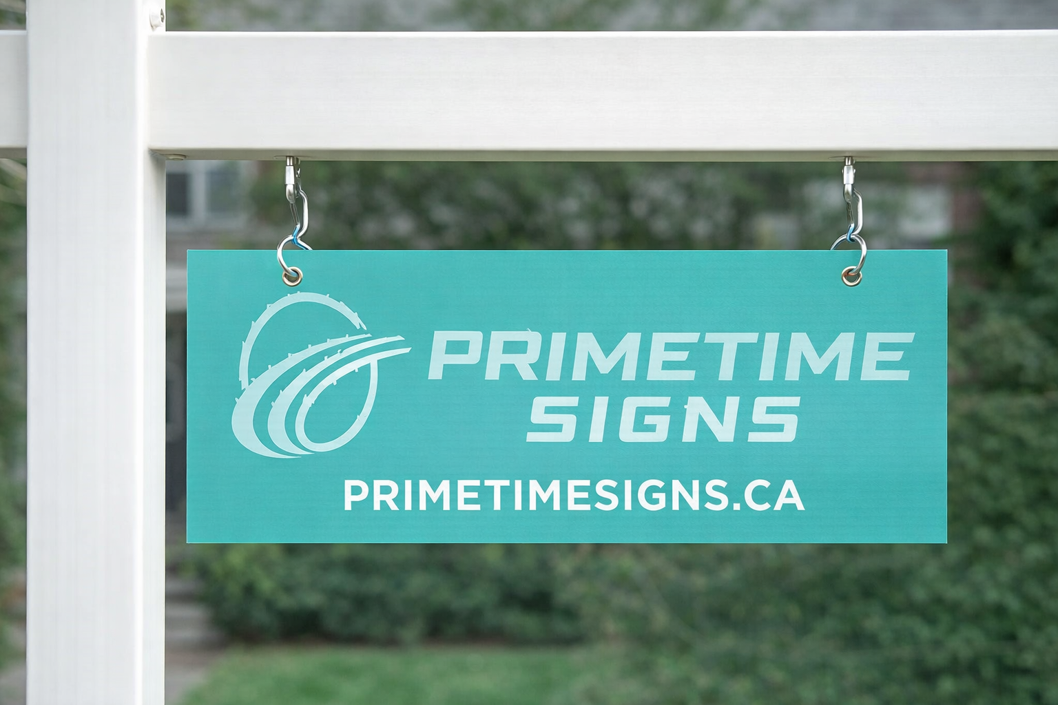 Add your name or team branding above your main sign. Printed in sharp, weather-resistant ink.