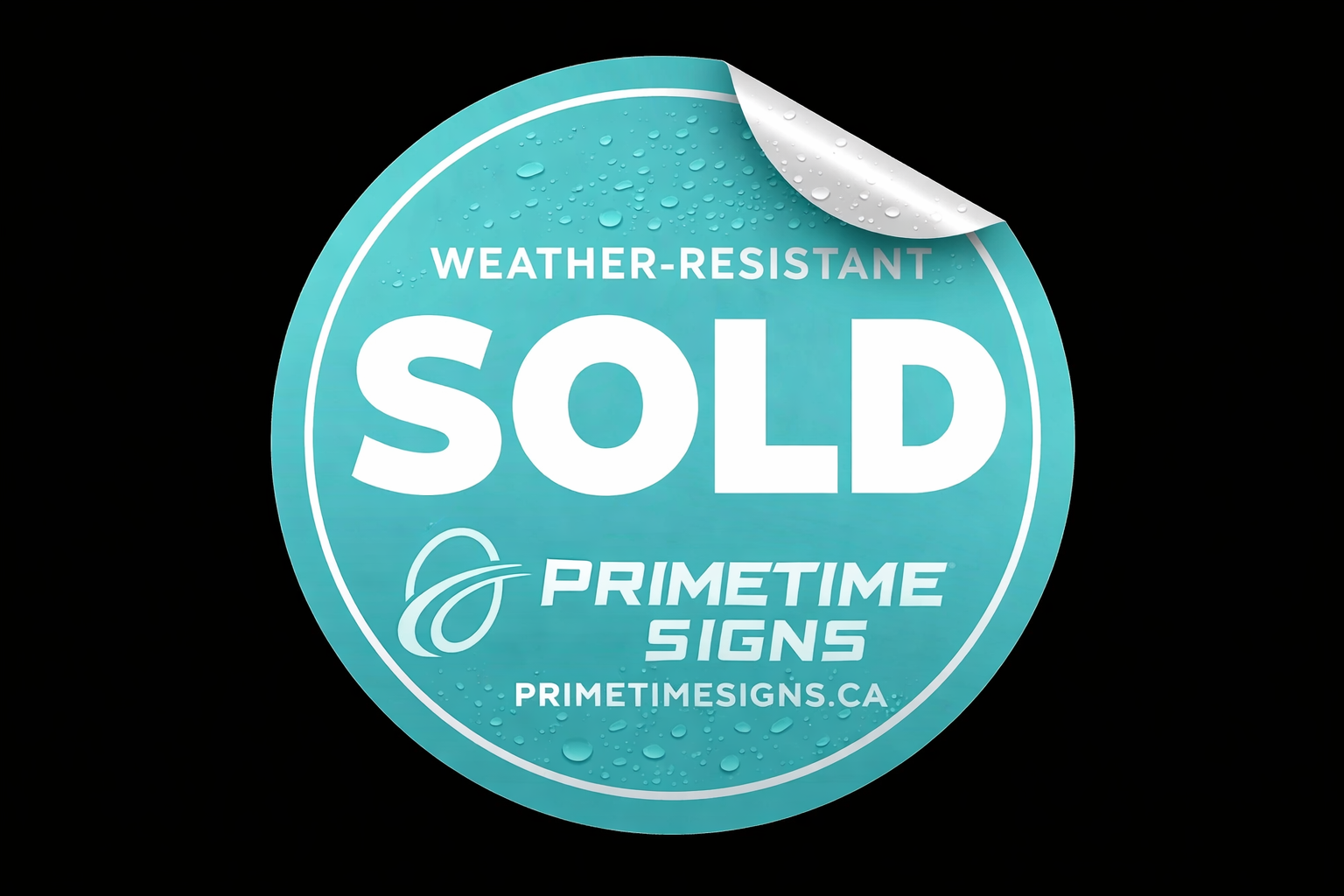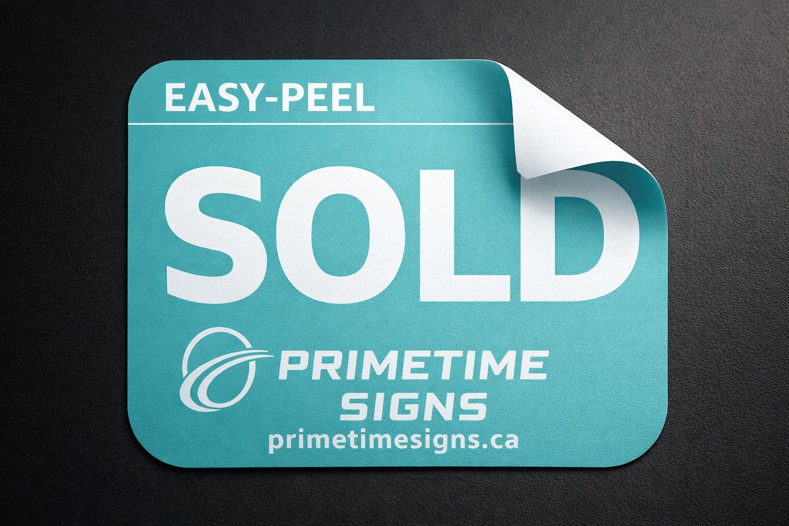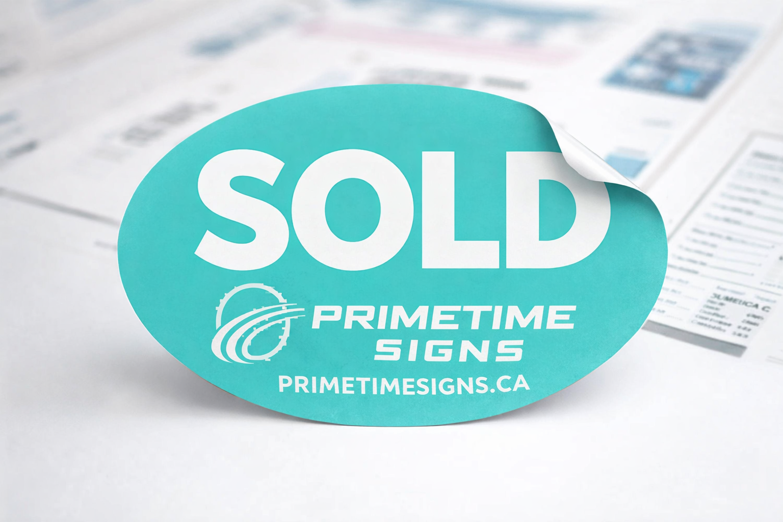 Durable vinyl sticker to mark sold properties quickly and clearly.